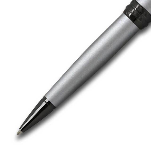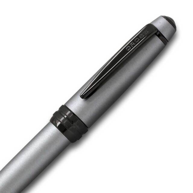 ベイリーは、クロスのベストセラー商品です。軸とグリップの境目のセンターリングは、細かい斜めストライプの彫刻が施されております。ペン先、センターリング、クリップをブラックPVDで仕上げモダンな面持ちです。洗練されたシルエットは、ビジネスギフトにもお勧めです。