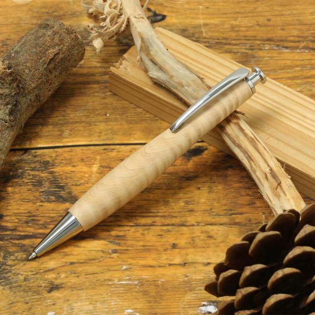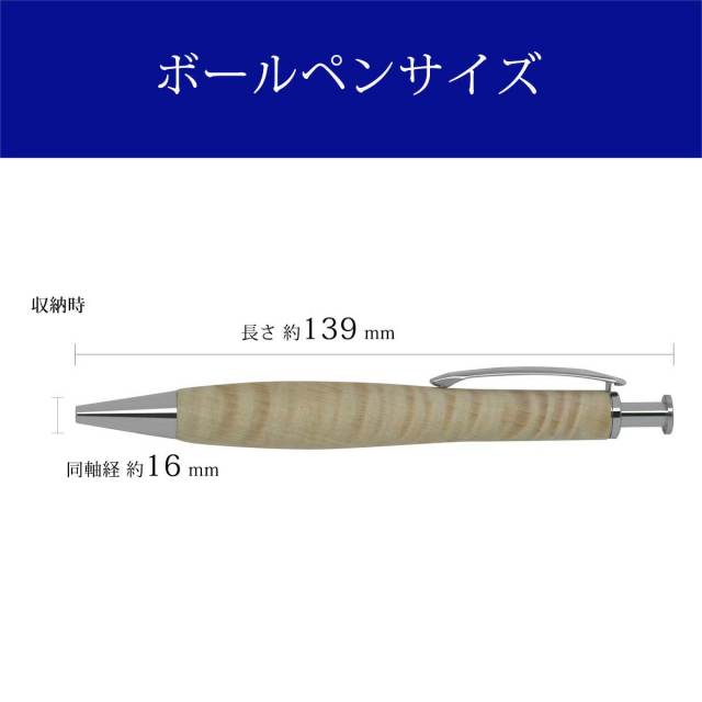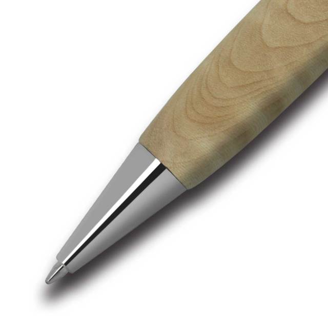流線形のフォルムは、ペン先の重心で使用バランスが良く、長く使っても疲れにくい独自の形状が特徴です。自然の恵である天然木製の中でも希少木にこだわり削り出しております。木肌の温もりを感じるボールペンです。