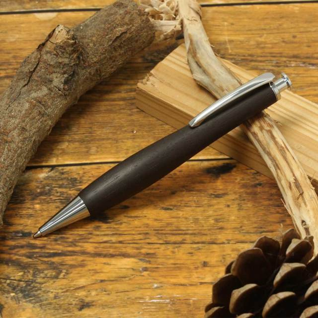 流線形のフォルムは、ペン先の重心で使用バランスが良く、長く使っても疲れにくい独自の形状が特徴です。自然の恵である天然木製の中でも希少木にこだわり削り出しております。木肌の温もりを感じるボールペンです。