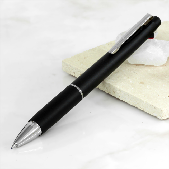 超・低摩擦ジェットストリームインク搭載。筆記荷重、速度にかかわらず低い筆記抵抗でなめらかに書けます。濃くはっきりとした描線を書くことができ、速乾性にも優れています。1本でボールペン3色(黒・赤・青)が揃った多色ボールペンです。学生さんに絶大な人気を誇るシリーズです。