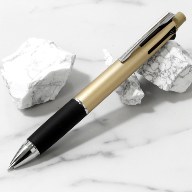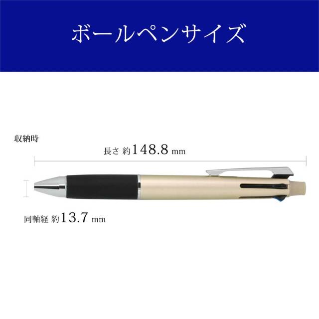超・低摩擦ジェットストリームインク搭載。筆記荷重、速度にかかわらず低い筆記抵抗でなめらかに書けます。濃くはっきりとした描線を書くことができ、速乾性にも優れています。1本にボールペン4色(黒・赤・青・緑)とシャープの機能が揃った多機能ボールペンです。学生さんに絶大な人気を誇るシリーズです。