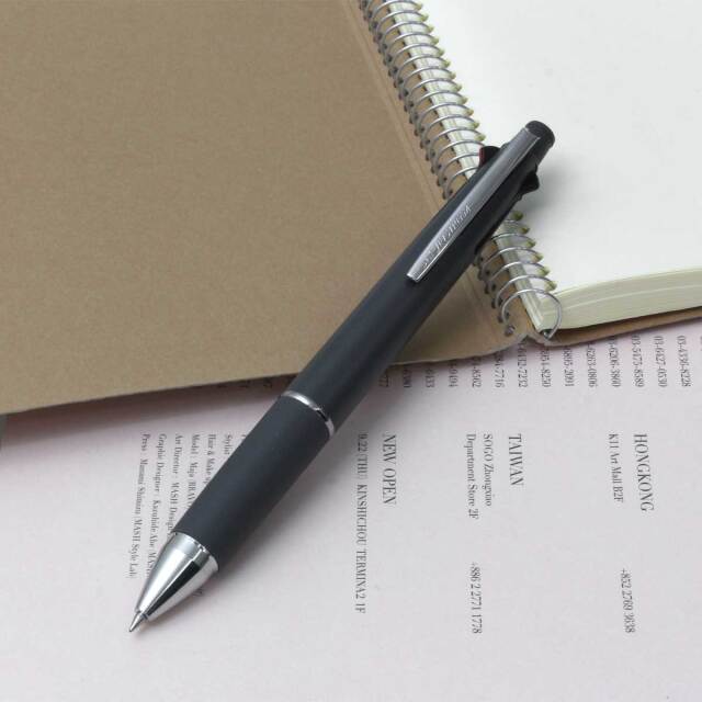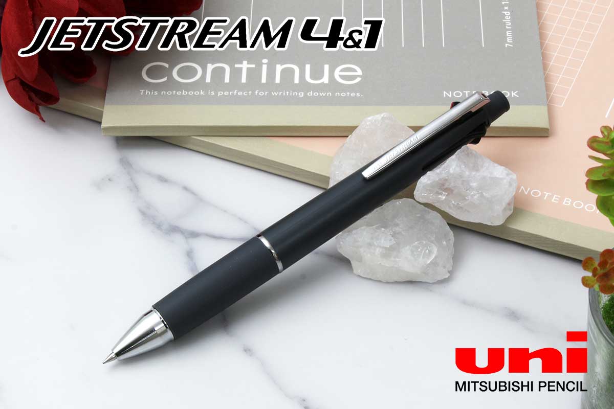2025年新カラーが、登場しました。超・低摩擦ジェットストリームインク搭載。筆記荷重、速度にかかわらず低い筆記抵抗でなめらかに書けます。濃くはっきりとした描線を書くことができ、速乾性にも優れています。1本にボールペン4色(黒・赤・青・緑)とシャープの機能が揃った多機能ボールペンです。学生さんに絶大な人気を誇るシリーズです。帳や小物などご自身の持ち物や服装に合わせてカラーグリップの軸を選んだり、黒グリップ搭載の軸ですっきりとした印象にしたり、シーンや好みに合わせて選択をしていただけます。