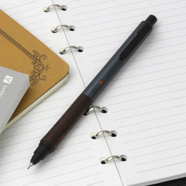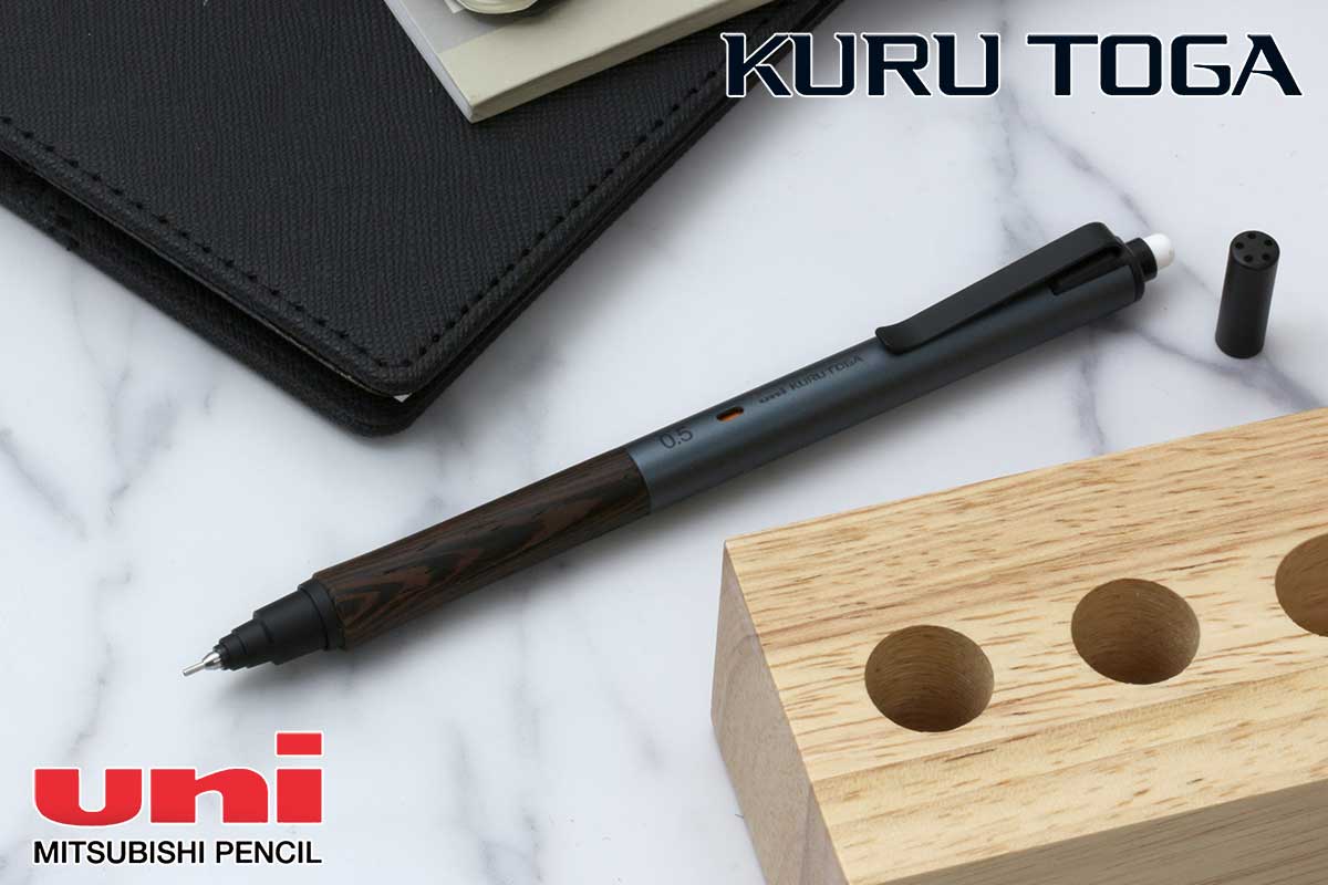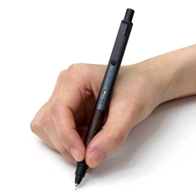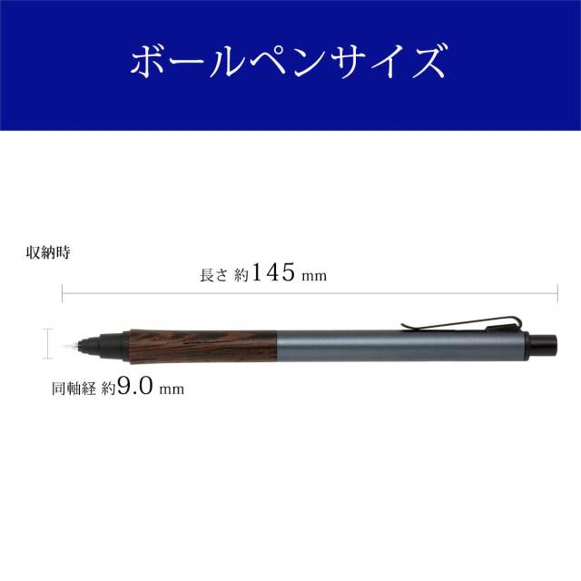 学生さんを中心に絶大な人気を誇る「クルトガ」。書くたびに芯がクルっと少しずつ回転することによりトガった芯をキープし、細く・クッキリ書き続けられるシャープペンです。クルトガは芯先の形状がいつもトガっているので、細い文字を書き続けることができます。また、芯の粉が出にくく紙面が汚れにくいのも特長です。グリップ部分には重厚感のある色味と木目にこだわり、「ウェンジュ」という樹種を採用。表面加工と軸色にこだわったアルミ製の後軸と組み合わせることで、より一層の上質さと天然木の味わいを表現。安定した筆記感に加え、唯一無二の木の温もりと精巧なメタルボディが調和したモデル。