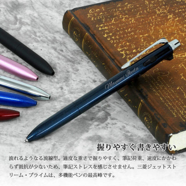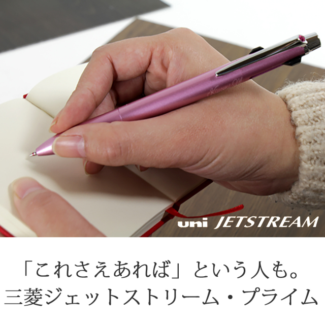 「このインクでなければイヤだ!」という人もいるほど評価の高いジェットストリーム・インクを搭載した、「ジェットストリーム」コレクションの最上位「プライム」シリーズです。上質で先進的なデザインを持ち、金属製のリフィルを採用することで直径を細くしながらもインク量を確保し、軸径のスリム化を実現させています。先軸と後軸で素材を変えて重量バランスを最適化、重厚感がありながら重さを感じさせません。