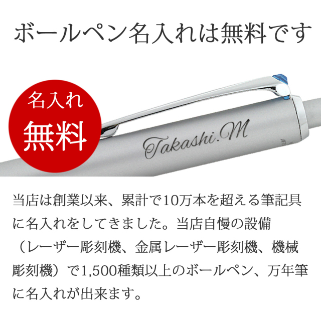 当店は創業以来、累計で10万本を超える筆記具に名入れをしてきました。当店自慢の設備(レーザー彫刻機、金属レーザー彫刻機、機械彫刻機)で、1,500種類以上のボールペン、万年筆に名入れが出来ます。
