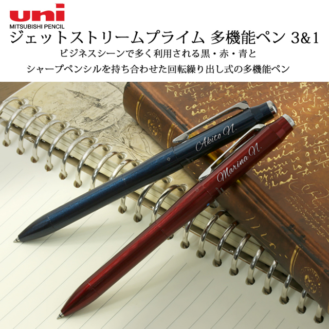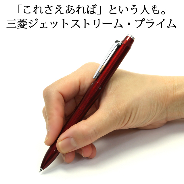 三菱鉛筆(UNI)『ジェットストリーム プライム』シリーズの回転繰り出し式ボールペン。なめらかな書き味の「ジェットストリームインク」を使用した、高価格帯の筆記具を求めるお客様の声に応えて作られました。『ジェットストリーム』の最上位モデルとして、社会人層を中心に人気の高いボールペンです。