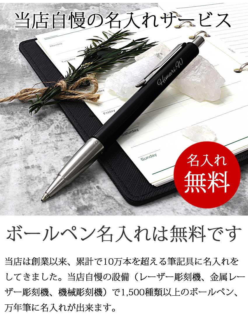 当店は創業以来、累計で10万本を超える筆記具に名入れをしてきました。当店自慢の設備(レーザー彫刻機、金属レーザー彫刻機、機械彫刻機)で、1,500種類以上のボールペン、万年筆に名入れが出来ます。