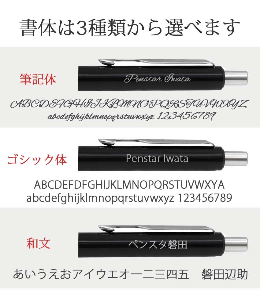 英文は「筆記体」と「ゴシック体」がご利用可能です。