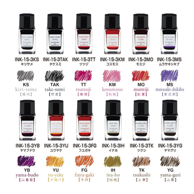 日本には、美しい自然や景色が多く存在し、またそれ等にはとても美しい名があります。iroshizuku-色彩雫(いろしずく)シリーズは、その美しい情景から創造された彩り豊かなインキです。さらなる書く喜びと楽しみをあなたに。別売りのコンバーターを装着し、ペン先を首の部分までインキに浸してそれぞれの吸入方法(回転吸入式・プッシュ式)で吸入し使用します。※プランジャ式吸入機構・回転吸入機構万年筆は本体に直接吸入し使用します。