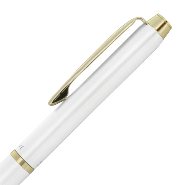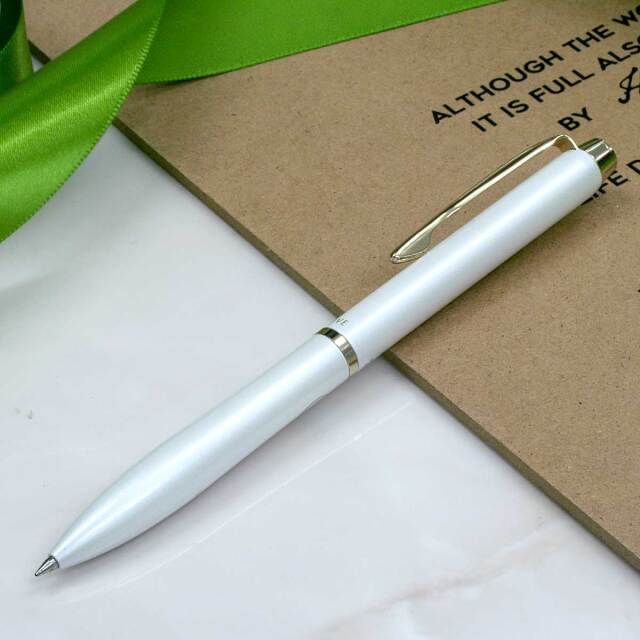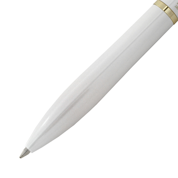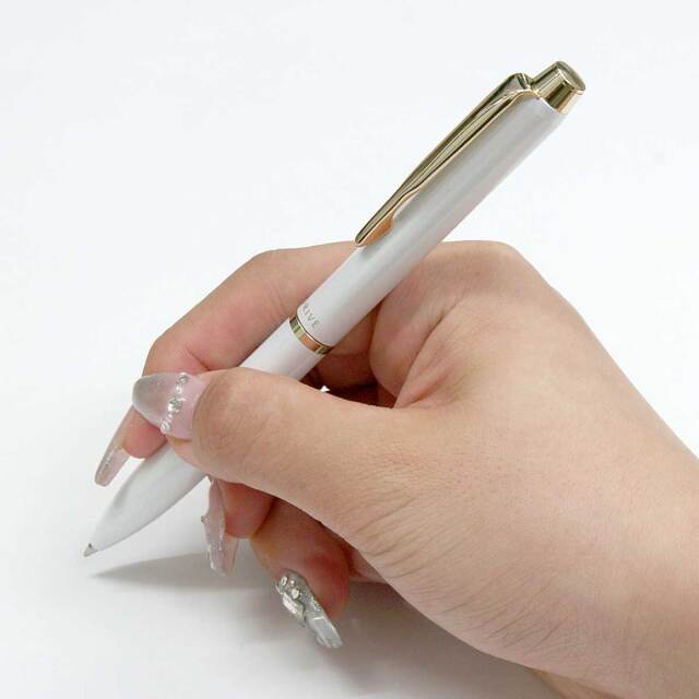 滑らかな筆記と掠れがない書き出しが特徴の油性インキ「アクロインキ」をイメージした流れるような形状のボールペンです。