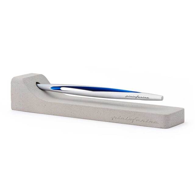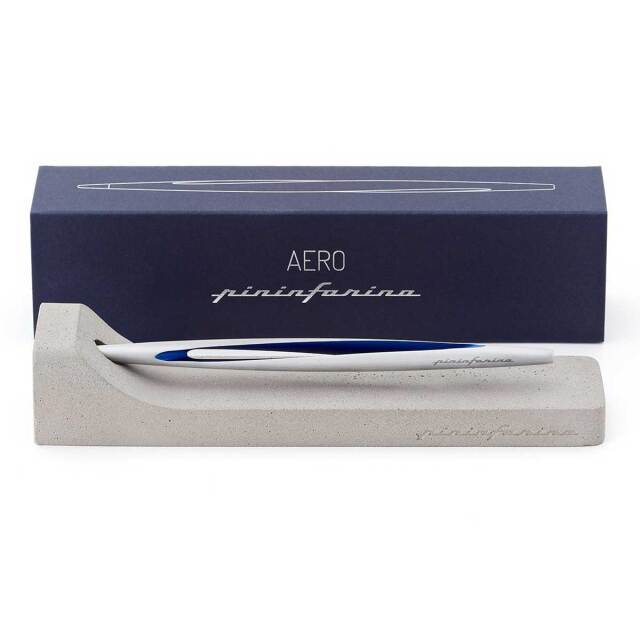 航空機グレードのアルミとは亜鉛とアルミニウムの合金で、スチールに匹敵するほどの耐久性があり、しかも軽量なことから広く航空産業に使用されています。「エアロ」はボディ全体がこの航空機グレードのアルミでできており、さらに中央の空洞とツイストしたデザインにより、わずか17gという軽さを実現しました。ペンスタンドは逆にざらざらしたコンクリート製でペンの軽さと完璧さを引き立てます。