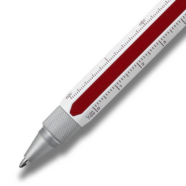 多彩な機能を搭載したモンテベルデの「ツールペン」シリーズから、新タイプの「エッジ」が登場しました。白を基調としたオシャレなツートンカラーで、文字通り「エッジの効いた」デザインに仕上がっています。ペン先の反対側には、スマフォやタブレットを操作できるスタイラスを装備。スクリーンへの指紋の付着も防ぎます。スタイラスのキャップしたにはドライバーが内蔵され、小さいネジを外したい時などに便利です。側面のスケールは、地図上の距離を測るなど、アウトドアでも活躍します。まるで鉛筆のような六角形の軸は、どこか懐かしさを感じさせます。