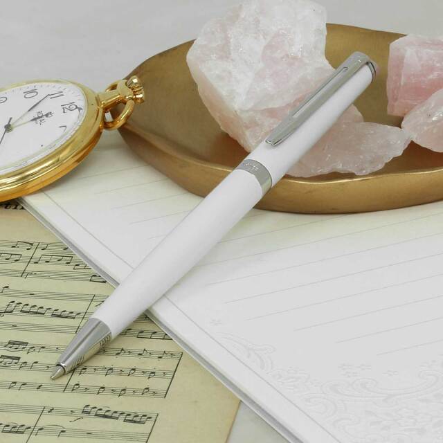 シャツの胸ポケットや手帳に収まり、細身でありながら程よい重量:感で書き味も優れています。